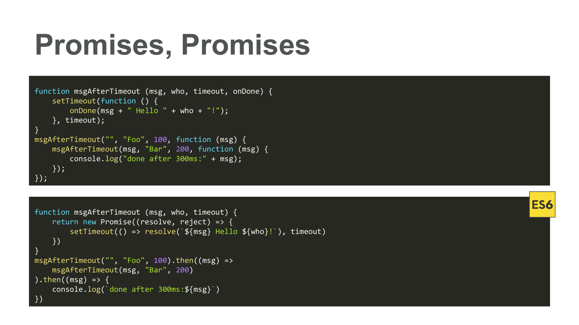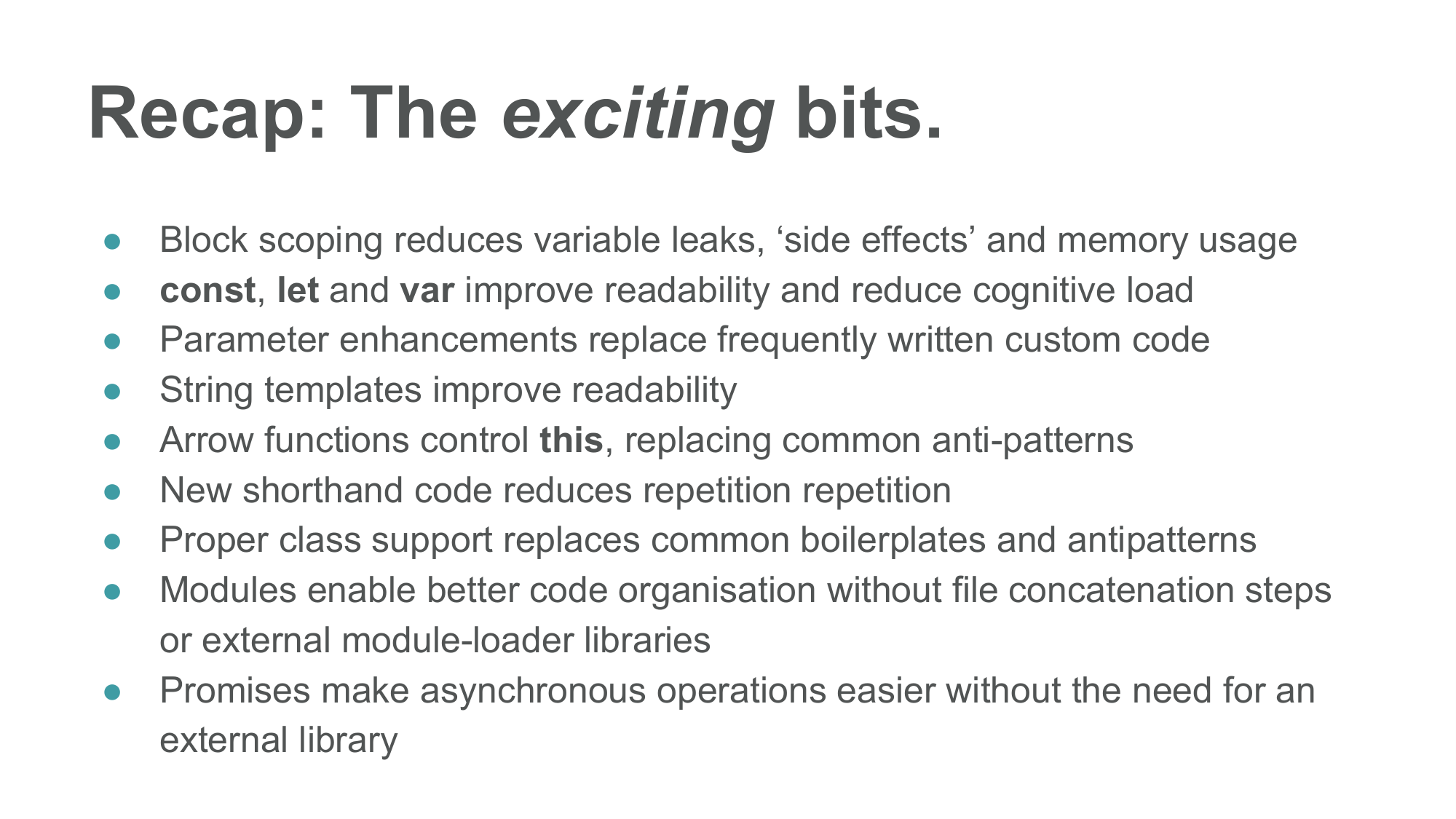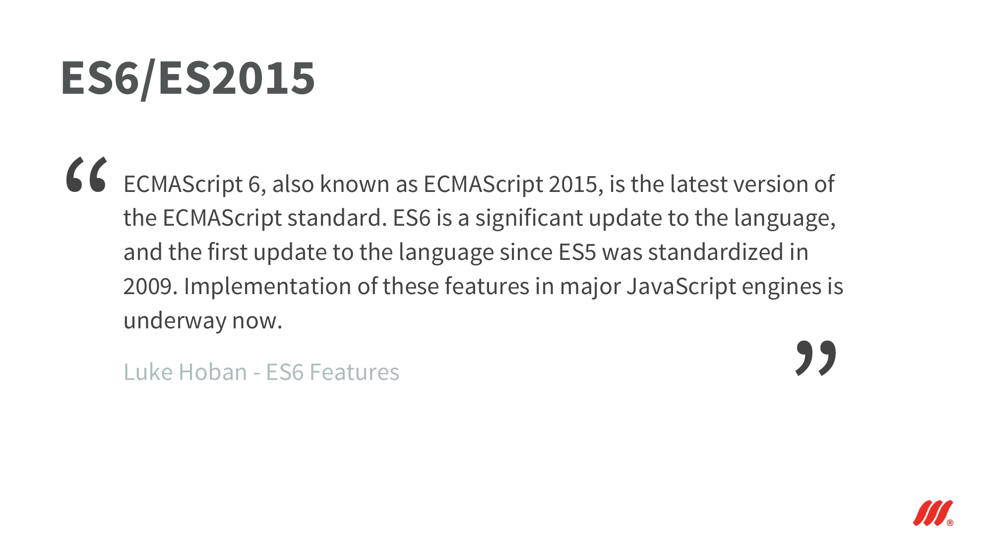 This was a Brown Bag / Lunch n’ Learn session on the topic of the new Javascript syntax and capabilities offered by ECMAScript 6.
